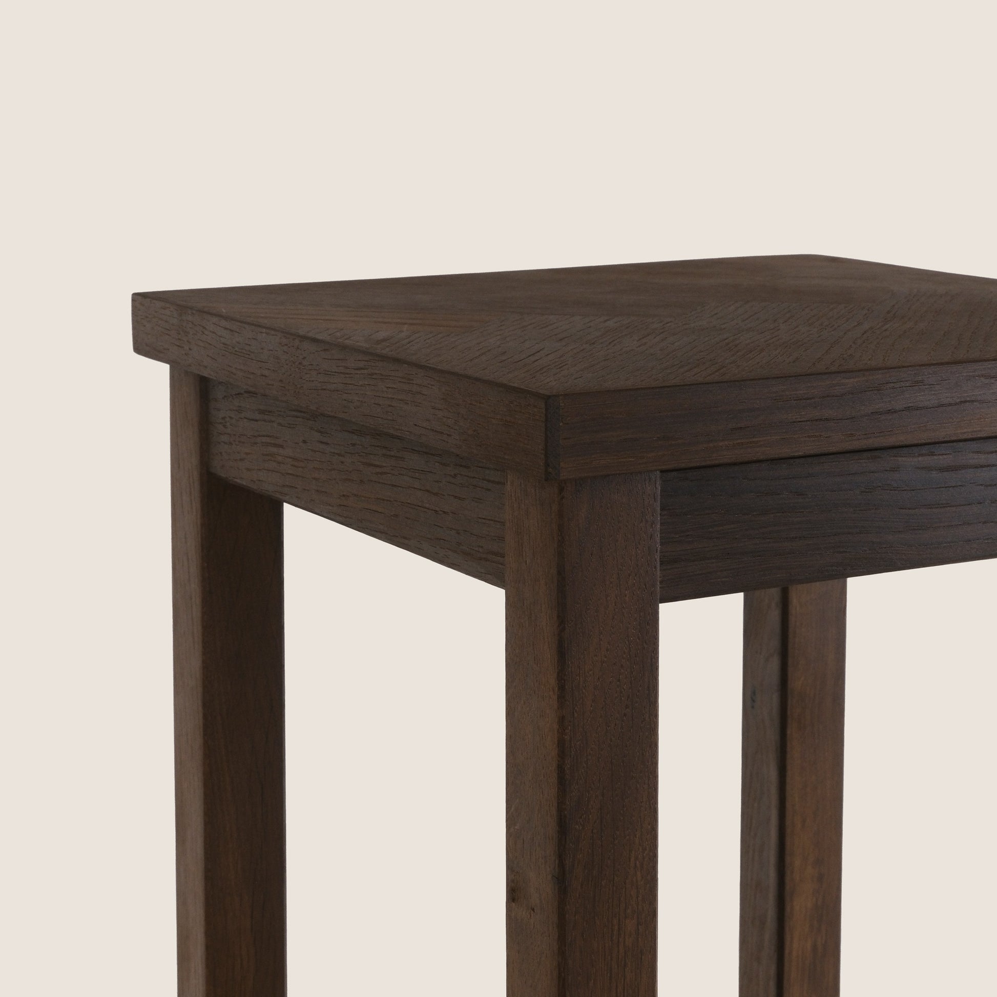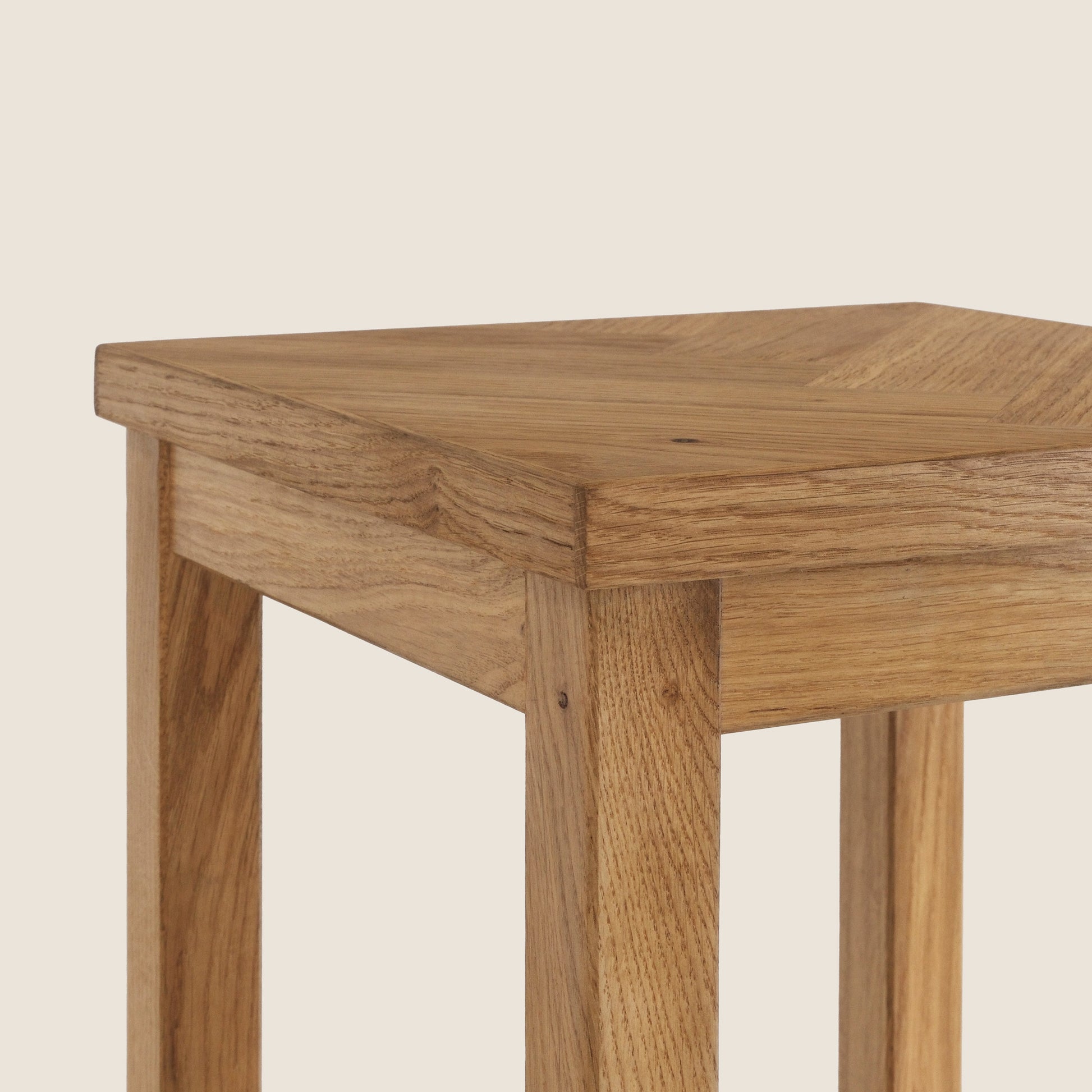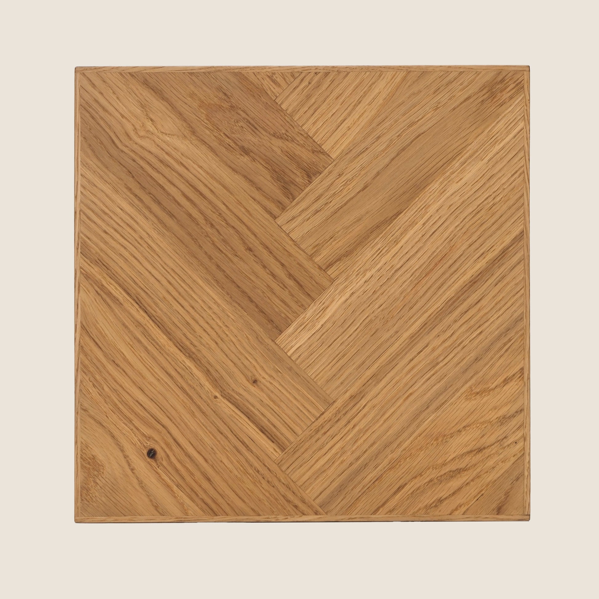 Ferdi aus Eiche zeigt seine Besonderheit in der kunstvoll gearbeiteten Fischgrät-Oberfläche – ein Detail, das sofort ins Auge fällt und jedem Interieur Charakter verleiht. Dank seines klaren, zeitlosen Designs begleitet er dich viele Jahre stilvoll an Kücheninsel, Bar oder im Essbereich.
