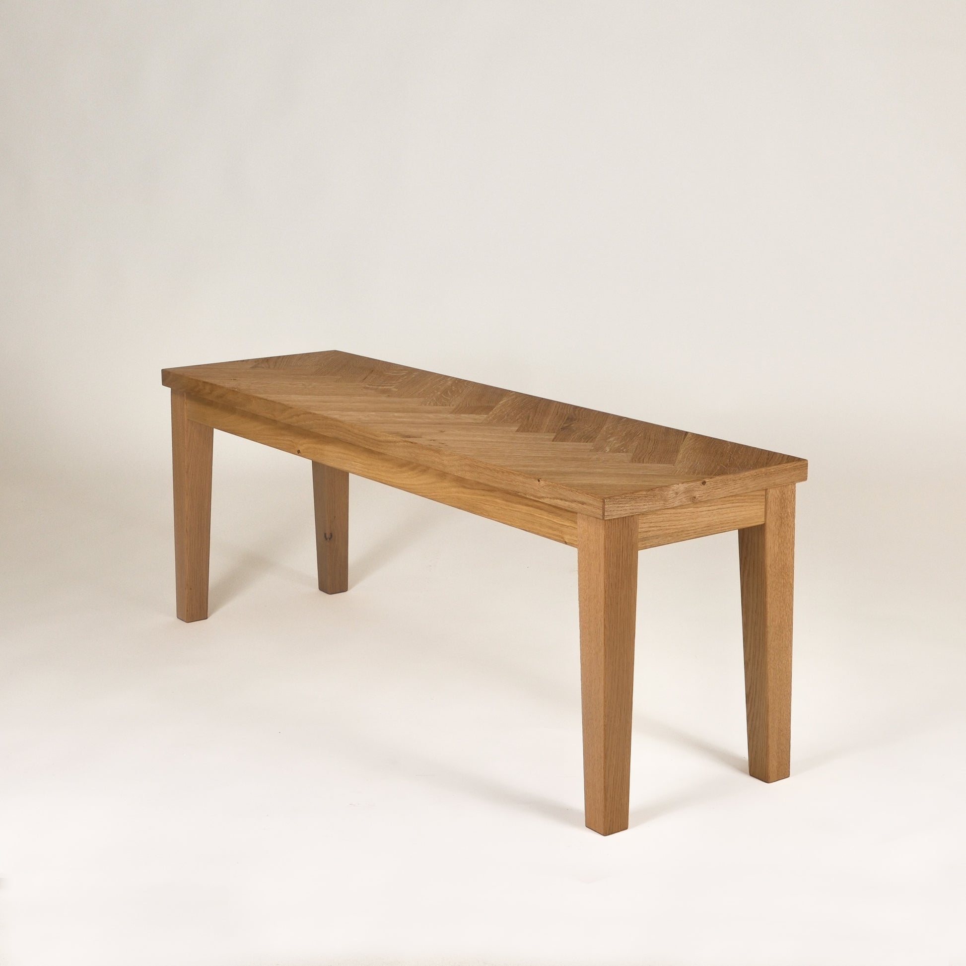 Uli aus Eiche überzeugt mit einer edlen Fischgrät-Oberfläche, die sofort Wärme und Charakter in dein Interieur bringt. Mit ihrer klaren, zeitlosen Form bietet sie nicht nur einen bequemen Sitzplatz, sondern wird auch über viele Jahre ein stilvolles Statement in deinem Zuhause.