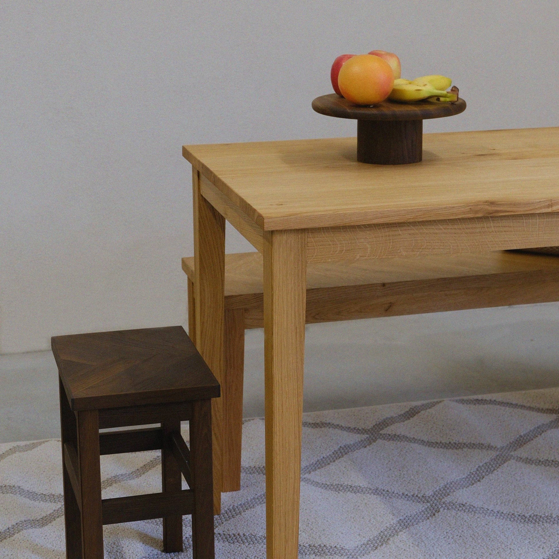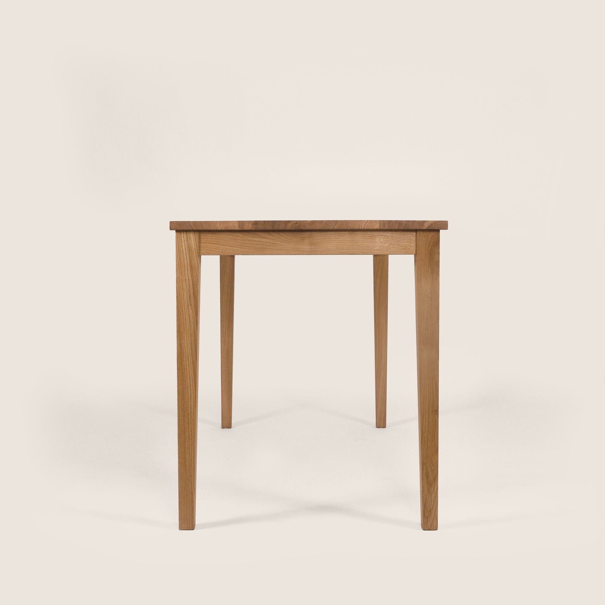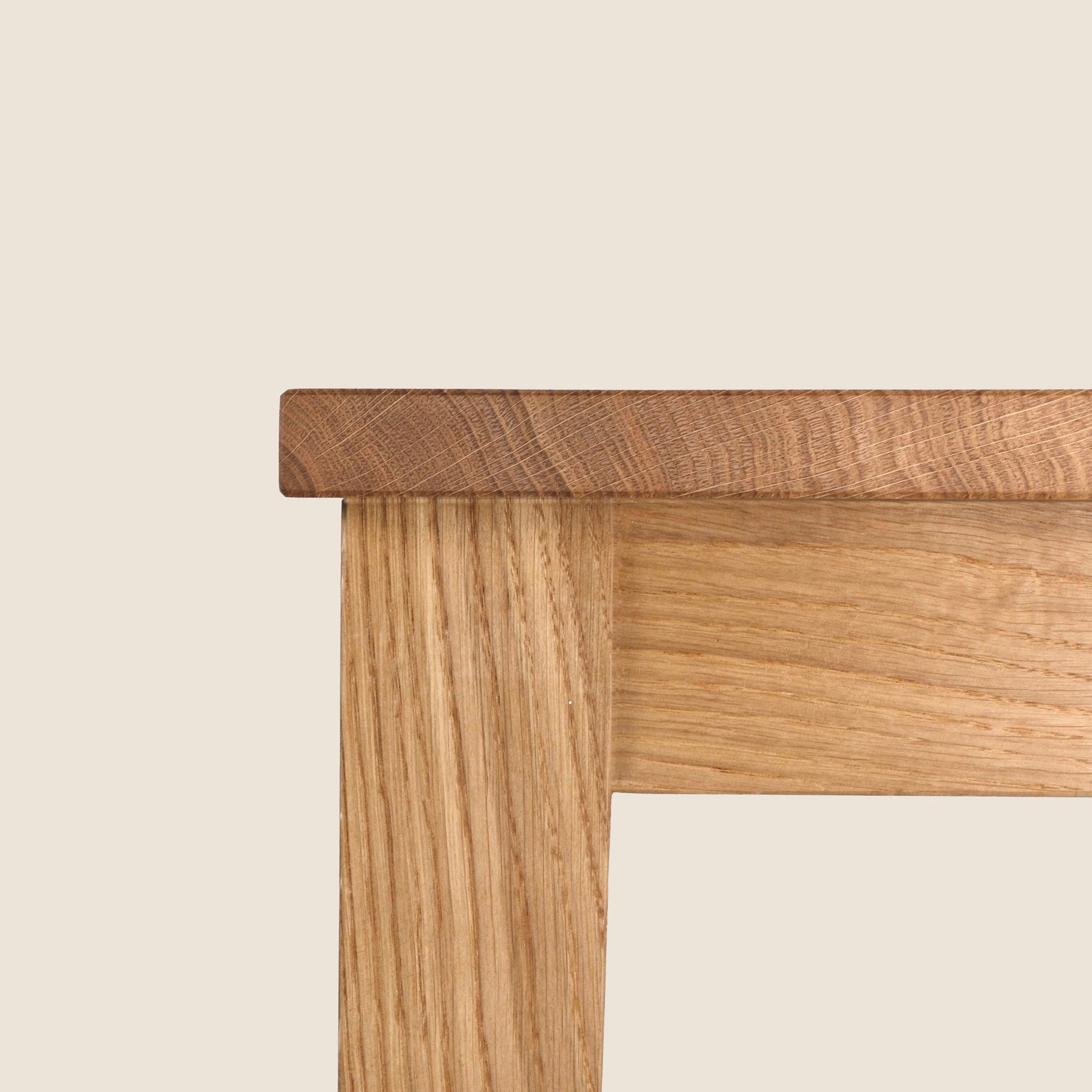 Tisch Oski aus Eiche verbindet Stabilität mit feinem Design. Seine leicht konischen Beine verleihen ihm eine harmonische Einfachheit, während die massive Eichenplatte Stärke und Beständigkeit ausstrahlt. Mit seinem klaren, zeitlosen Charakter fügt er sich mühelos in jedes Interieur ein – ein Tisch fürs Leben, an dem Design und Handwerk zu einem stimmigen Ganzen verschmelzen.